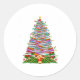 Pegatina Redonda Book Christmas Tree Lights Book Lover Teacher Libr