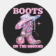 Pegatina Redonda Boots En El Bote De Bote En El Suelo Cowboy Wester
