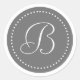 Pegatinas con un borde redondo de monograma gris con un acento de punto blanco. Personalice su monograma utilizando la plantilla sencilla. El color de fuente, el estilo de fuente y el tamaño de fuente son personalizables.