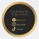 Sobres de sellado y envolturas de regalo con una etiqueta redonda moderna que destaca una línea hecha a mano, escritura elegante y espacio para enlaces de redes sociales para aumentar los seguidores después de cada pedido en la tienda Etsy. El centro negro en negrita y el anillo con efecto dorado de lujo crean un alto contraste para el empaque de pequeñas empresas y la etiquetado de productos, con áreas claras para los nombres de cuenta de Facebook, Instagram y TikTok. La personalización es totalmente compatible. Actualice el nombre, el mensaje y los iconos para que coincidan con el estilo de la marca. El efecto dorado es impreso.