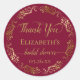Estos hermosos pegatinas son perfectos para dar las gracias a los clientes en una ducha de novia. El diseño presenta un lujoso guión de oro en un fondo burdeos, marrón o rojo vitivinícola con un borde de encaje de imitación de Relieve metalizado dorado. El texto dice Gracias, con espacio para que el nombre de la novia sea y la fecha. Elegante, elegante y sofisticado, estos pegatinas añaden un poco de estilo a medida que se celebra la novia.