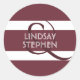 Pegatina Redonda Borgoña y franjas blancas Boda moderno