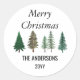Pegatina Redonda Bosque de invierno árboles de pino elegantes Navid