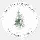 Estos modernos stickers de bodas vacacionales cuentan con un moderno pino color agua verde sobre un fondo blanco limpio.