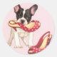Pegatina Redonda Boston Terrier Puppy Con Zapatos
