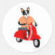 ¡Mira a Boston Terrier montando su motocicleta roja vintage! Este ilustracion de Boston Terrier sería genial para los aficionados a la caza y a los perros por igual.