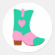 Pegatina Redonda Bota de vaca con diseño de corazón
