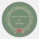 Pegatina Redonda Botanical Christmas Wreath Modern Script