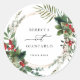 Pegatina Redonda Botanical Holiday Greenery Red Berries Wedding