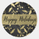Pegatina Redonda Botánico Negro y Dorado Feliz Navidad Elegante