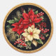 Pegatina Redonda Botánicos Navideños Opulentos Rojo y Verde