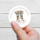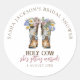 Pegatina redonda clásica Despedida de soltera Botas de vaquero florales Vaca Santa