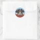 Pegatina Redonda Bote rojo de cráneo Gorra pirata verde gato marrón