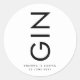 Pegatina Redonda Botella de licor con nombres grandes y negritas ul