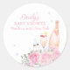 Pegatina Redonda Botellas de champán Rosa Poppin Baby Shower