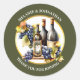 Pegatina Redonda Botellas de vino con acuarela uvas campo uvas