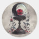 Pegatina Redonda Boudoir | Crystal Ball Crescent Moon Roses rojos