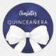 Pegatina Redonda Bow azul marino blanco Quinceanera
