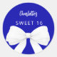 Pegatina Redonda Bow azul real blanco Sweet 16