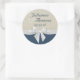 Bonito blanco arco, cinta y diseño impreso en burlap favorece al pegatina con los nombres de la pareja y fecha boda. Cambiar el color de fondo y los colores de texto como prefiera.