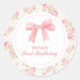 Pegatina Redonda Bow rosa y Rosas Coquette primer cumpleaños