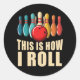 Pegatina Redonda Bowling Fun Strike Lover Retro