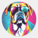 Pegatina Redonda Boxeador energético perro con gafas de sol arte po