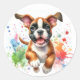 Celebra tu amor de cachorro con el Pegatina de Ronda Watercolor Boxer Dog Joy Classic - una elección perfecta para los amantes del perro, artesanía y regalos