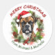 Pegatina Redonda Boxer Dog Navidades Red Berry Wreath