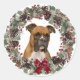 Pegatina Redonda Boxer Dog Red Bow Pinecone Wreath Navidades