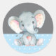 Pegatina redondo de elefante pequeño Baby Shower azul y gris clásico