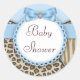 Elegantes pegatinas de ducha para bebés de safari marrón y azul. Este adorable pegatina de ducha de bebé de niños de la selva azul y marrón es fácilmente personalizado para su evento.