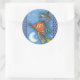 PEGATINA REDONDA BRAZA DE FLAMINGO ROSA, VOLANDO SOBRE LA LUNA EN U