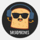 Pegatina Redonda Breadphones Funny Bread Pun Dark BG