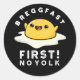 Pegatina Redonda Breggfast First No Yolk Funny Egg Pun Dark BG