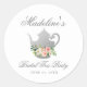 Pegatina Redonda Bridal Shower Tea Fiesta Plata Floral Rosa