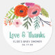 Pegatina Redonda Bright Floral Love and Gracias Baby Shower