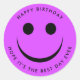 Pegatina Redonda Bright Purple Happy Face Cumpleaños