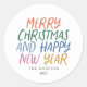 Pegatina Redonda Brillante colorido Feliz Navidad Feliz Año Nuevo