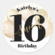 Pegatina Redonda Brillante dulce 16 cumpleaños Dorado Globos Girale