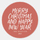 Pegatina Redonda Brillante Navidad Roja Feliz Año Nuevo