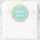 Un patrón de cheurón brillante da a estos pegatinas de Pascua Feliz estilo retro. Personalice el texto para que se ajuste a sus necesidades. El diseño es de arte original.
