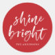 Añada un toque festivo a sus sobres de vacaciones y cajas de regalo con nuestros pegatinas de vacaciones Brillantes Bright. Los pegatinas personalizados de vacaciones presentan las palabras "Brilla brillante" en un guión blanco, moderno y con letras a mano y un fondo rojo. Personalice a los pegatinas agregando su nombre o texto personalizado a continuación.