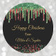 Pegatina Redonda Brillo Rojo Verde Goteante Navidad Negra Glam