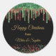 Pegatina Redonda Brillo Rojo Verde que Gotea Navidad Negro Glamour