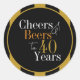 Pegatina Redonda Brindis y Cervezas 40 Años Raya Negra y Dorada