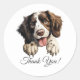 Esta pegatina inglesa de juguetón Springer Spaniel Gracias es perfecta para los amantes de los perros que aprecian esta raza amigable y enérgica. Añade este adorable diseño a tus regalos de agradecimiento por un toque personal.