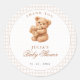 Pegatina Redonda Brown Gingham Teddy Bear Neutral Baby Shower Paper