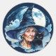 Pegatina Redonda Bruja con un gato - Wicca Halloween 1