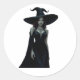 Esta fascinante obra de arte digital retrata a una bruja poderosa con un vestido negro y elegante con ojos rojos brillantes y el gorra de una bruja elegante.